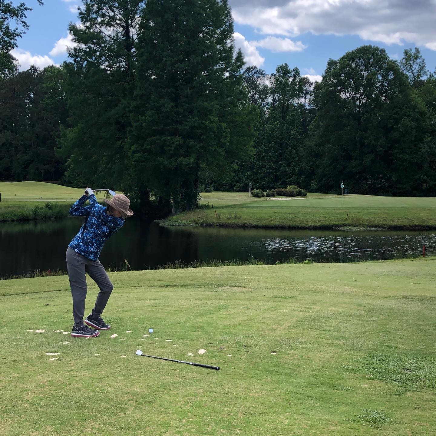 Played with an old friend today, Cynthia Frost. It was great to see her and spend a few hours on the course. Everyone at the course was very friendly and the course had some challenging holes. It’s going to take some getting used to being away from the coast. Courses play very differently. Lost 2 balls and shot a 94 which was disappointing.
